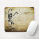 Illustration d'un squelette dansant. L'arrière - plan a l'air d'un vieux os.
