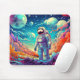 Cette mousepad très colorée présente l'illustration d'un astronaute regardant vers le soleil. N'hésitez pas à ajuster toutes les options disponibles comme vous le souhaitez.