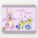 Danser lapin et poussins avec des oeufs souhaitant "Bonne Pâques". Beau et drôle cadeau pour vos enfants