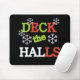 Le texte rouge, vert et blanc avec des flocons de neige blancs dit "Deck the Halls" sur les T-shirts, sacs fourre-tout, tasses, magnets, et plus encore.