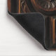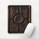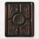 Ce mousepad est décoré d'une image d'un beau bois artistique découpant aux nuances du brun, de l'or, de l'acajou et du noir. Une image circulaire abstraite centrale de fleur a des pétales rayonner à un cercle découpé qui est entouré par quatre sections. Chaque section a les découpages abstraits de feuille.