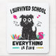 Conception amusante de l'école avec un chien stressé et la citation "J'ai survécu à l'école, tout va bien". Parfait pour une dernière journée d'école avant les vacances d'été ou les vacances d'été. Pour les élèves et les enseignants.