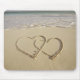 Tapis De Souris Deux coeurs dominants tirés sur la plage