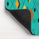 Ce pavé de souris a une conception atomique moderne du milieu du siècle de diamants, et des starbursts sur un champ de turquoise.