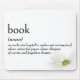 Definition of BOOK in black text with white cosmos flower on a white background.