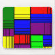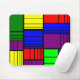 Ce tapis de souris a un design Bauhaus de rectangles divisés en morceaux toujours plus petits en rouge, jaune, bleu, vert, violet sur un champ de noir.