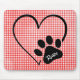 Tapis De Souris Dog Paw Print and Heart on Gingham