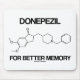 Donepezil est un inhibiteur de l'acétylcholinestérase et est connu comme étant un traitement palliatif pour la maladie d'Alzheimer. Montrez votre côté molécule chimique irréfléchie avec cette mousepad avec la structure chimique du donepezil avec la légende qui dit tout : "Pour une meilleure mémoire". Mémorable scientifique disant mousepad pour un être cher affecté par la maladie d'Alzheimer.