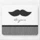 Tapis de souris d'ordinateur rayé noir et blanc Moustache. Ajoutez du texte ou laissez vide.