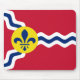 Mousepad avec le drapeau de la ville de St Louis ; drapeau rouge avec les vagues blanches et de bleu et fleur-De-lys bleu en cercle jaune