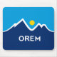 Mousepad avec un design avec le drapeau d'Orem, Utah. Un drapeau bleu, blanc et jaune avec des sommets de montagne et le soleil au centre