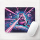 Tapis De Souris Drôle chat géant et dinosaures dans l'espace
