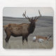 Bull Elk et Pronghorn Antelope Mouse Pad. Un spectacle très rare, un gros wapiti de taureau et une grande antilope de prérghorne assez près pour entrer dans la photo.