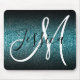 Tapis De Souris Elegant Black Ombre Teal Glitter Monogram