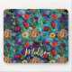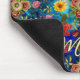 Tapis De Souris Élégant bleu Floral patron monogramme