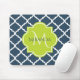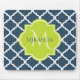 Tapis De Souris Élégant monogramme Marine Quatrefoil vert et nom