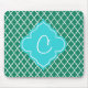 Tapis De Souris Élégant monogramme vert et turquoise de quatrefoil