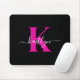 Tapis De Souris Élégant Noir Hot Rose Script Monogramme