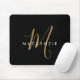 Élégant Noir Noir Script Monogramme Pad Souris. Un élégant monogramme en or combiné à une police blanche de san-serif, donne un aspect contemporain.
