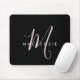 Élégant Noir Noir Blush Pink Script Monogramme Pad Souris. Un élégant monogramme Blush Pink combiné à une police blanche de san-serif propre donne un look contemporain.
