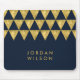 Élégant pavé de souris bleu foncé avec motif triangle chic faux or que vous pouvez personnaliser avec votre nom. Personnalisez-le en remplaçant le texte de l'espace réservé. Pour plus d'options comme changer la police et sa taille, cliquez sur le bouton "Personnaliser". *Veuillez noter que le filigrane Zazzle qui apparaît dans l'aperçu du zoom n'apparaîtra PAS sur le produit imprimé final. © Bois de rose et agrumes