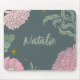 Tapis De Souris Élégant script monogramme vert olive vert rose flo