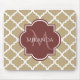 Une mousepad motif de quatrefoil marocaine élégant avec un badge de couleur bordeaux que vous pouvez personnaliser en ajoutant votre nom et monogramme initial à. Il fait partie de la collection Warm Sand and Spiced Apple Spring Quatrefoil Collection