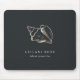 Island chic mousepad personnalisé pour votre entreprise ou votre bureau à la maison dispose de deux lignes de texte personnalisé en lettrage blanc classique, sur un arrière - plan noir doux orné d'une illustration de coquille de conque tropicale en fausse feuille d'or pour un look glam de plage.
