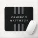 Tapis de souris noir avec trois rayures gris foncé fonctionnant verticalement avec votre nom ou votre nom d'entreprise.