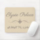 Latitude and longitude coordinates for the Élysée Palace in Paris, France - established during the 18th century. Fancy font and divider adds a touch of elegance . Beige background