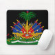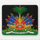 Armoiries d'Haïti. Les armoiries d'Haïti ont été introduites à l'origine en 1807, et sont apparues dans sa forme actuelle depuis 1986. Il montre six drapeaux drapés du pays, trois de chaque côté, qui sont situés devant un palmier et des canons sur une pelouse verte. Sur la pelouse, on trouve divers objets, comme un tambour, un fusil, des armes longues et des ancres de navire. Au-dessus du palmier se trouve un casquette phrygien placé comme symbole de liberté. Sur la pelouse entre le tambour et le ruban, il était supposé y avoir deux morceaux de chaîne avec un maillon brisé symbolisant la chaîne brisée de l'esclavage. Le ruban porte la devise : L'Union Fait La Force. Cela ne doit pas être confondu avec la devise nationale d'Haïti, qui selon la Constitution d'Haïti est "Liberté, Égalité, Fraternité".