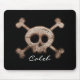 Tapis de souris en noir avec crâne et os en détresse. Ajouter du texte ou laisser vide.