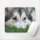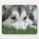 Chien de chien de traîneau sibérien se reposant dans l'herbe.