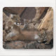 Peinture numérique d'un cougar mère avec 3 petits joués contre les rochers de la falaise.
