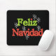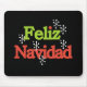 Le texte rouge et vert avec des flocons de neige blancs dit "Feliz Navidad" sur les cartes de voeux, les tasses, les sacs fourre-tout, les boutons, les T-shirts, et bien plus encore.