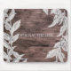 Tapis de souris Feuilles blanches et argentées & Bois rustique Élégant