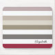 Une large mousepade horizontale rayée beige, taupe, rouge foncé et rouge neutre en motif rayé beige, taupe et blanc. Personnalisez ce design moderne et preppy en ajoutant votre nom.
