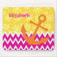 Tapis De Souris Fille Chevrons Rose Ancre orange avec nom