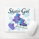 Notre T-shirts de conception de fille de patineur, tasses, sacs, cartes, coussins, horloges murales, souvenirs, sweat - shirts à capuche, et d'autres articles de patinage de thème comporte une paire de patins de bleu et de lavande et des mitaines sur une ficelle entourée par un bon nombre de flocons de neige hivernaux et de texte qui lit la fille de patineur !