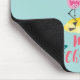 mousepad festif avec une jolie illustration d'un flamant rose dans un chapeau de santa rouge. À côté d'un palmier vert sur un monticule de sable jaune. Un design d'arbre de Noël tourbillonnant est placé à côté du texte Joyeux Noël. Écrit dans la couleur rose dans une police manuscrite fantaisie. Arrière - plan vert pastel.