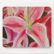 D'une aquarelle originale de Sacha Grossel de fleurs de lys de jour brillantes, colorées, roses et rouges en macro, focus rapproché. Ce design unique, rose chaud, stargazer a un design floral superposé avec des détails pétales dans le style de l'art botanique.