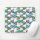 Ce tapis de souris a un design Boho de fleurs à l'intérieur des ovales qui ont été divisés en quartiers et placés sur une grille.