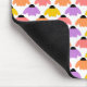 Ce pavé de souris a un design de confleurs éparpillés sur le design en jaune, orange, rose et violet sur un champ de blanc.