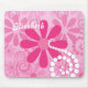 Une mignonne et girly rose et blanc mousepad floral pour une fille ado avec des marguerites rétro roses et des tourbillons blancs. Ce joli design de fleurs peut être personnalisé en ajoutant le nom de n'importe quelle petite fille.