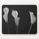 L'élégante vie calme de Calla Lilies. La photo en noir et blanc des fleurs est simplement une belle photographie. L'arrière - plan sombre derrière le lis fait ressortir la beauté de l'agencement floral. Il s'agit d'une superbe photo florale pour un design de tapis de souris.