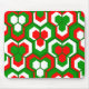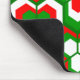 Ce pavé de souris a un design géométrique de Noël d'hexagones dans des ensembles de trois qui ressemblent à des fleurs en rouge, blanc et vert.