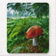 Image fractale entrante d'un champignon agarique à mouches rouges et blanches dans un coin forestier verdoyant.