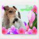 Fox Terrier mignon de fil avec les fleurs et le colibri.