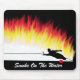 Mousepad avec l'image du skieur de l'eau de slalom donnant un coup de pied un mur des flammes au lieu de l'eau. Inclut le texte "fumée sur l'eau"