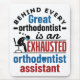 Drôle modèle d'assistant orthodontique qui dit, "Derrière chaque grand dentiste se trouve un assistant orthodontiste épuisé." Grande idée cadeau d'appréciation.